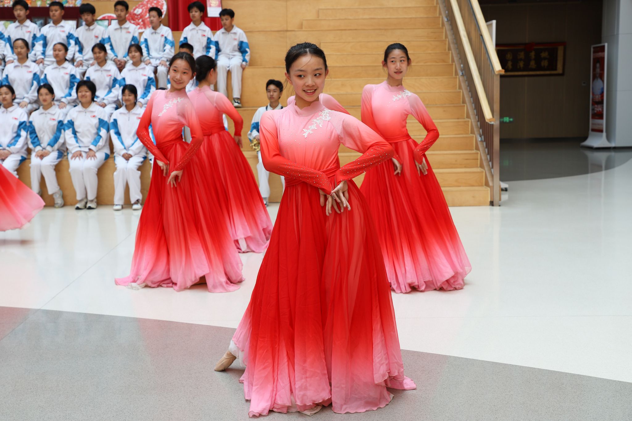 文艺表演环节在热烈的掌声中拉开帷幕。西安高新一中实验中学的学生们率先登场,他们以灵动的舞姿演绎了舞蹈《清澈的爱》,舞步传递出真挚的家国情怀,彰显蓬勃的青春力量,赢得了现场的阵阵喝彩。随后,中学生们带来经典歌曲《莫斯科郊外的晚上》,悠扬婉转的旋律在现场缓缓流淌。俄罗斯留学生们静静聆听,在熟悉的曲调中感受跨越国界的艺术共鸣。歌声传递着中俄友好情谊,也让两国青年的友谊在温情的氛围中愈发深厚。